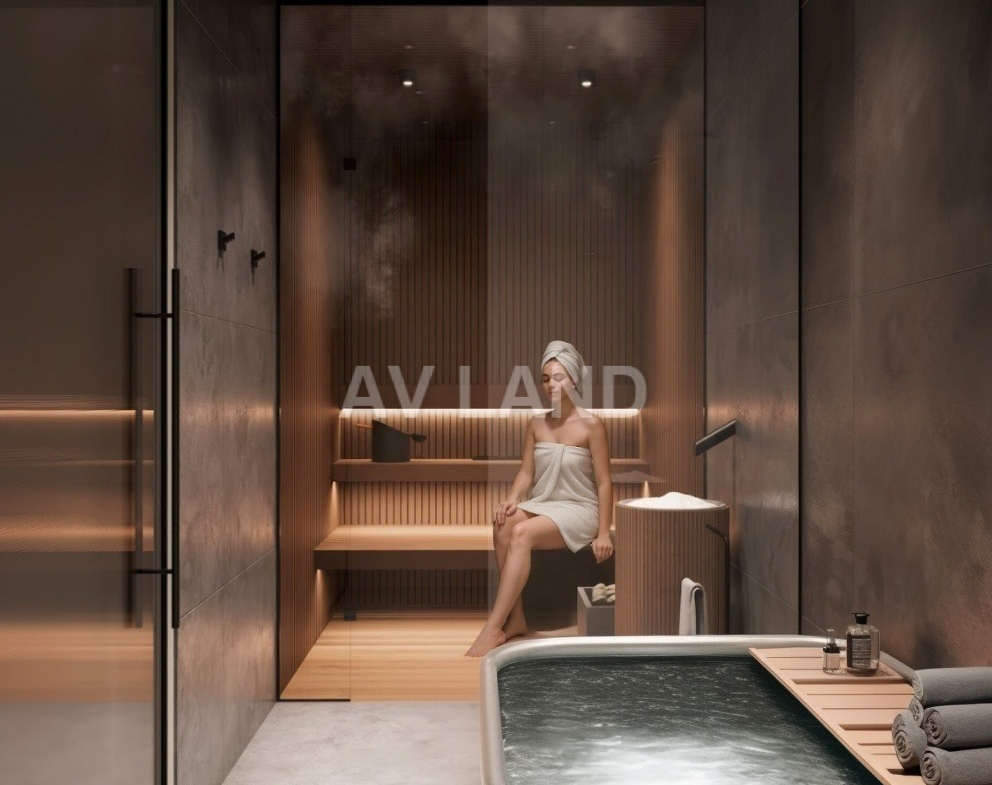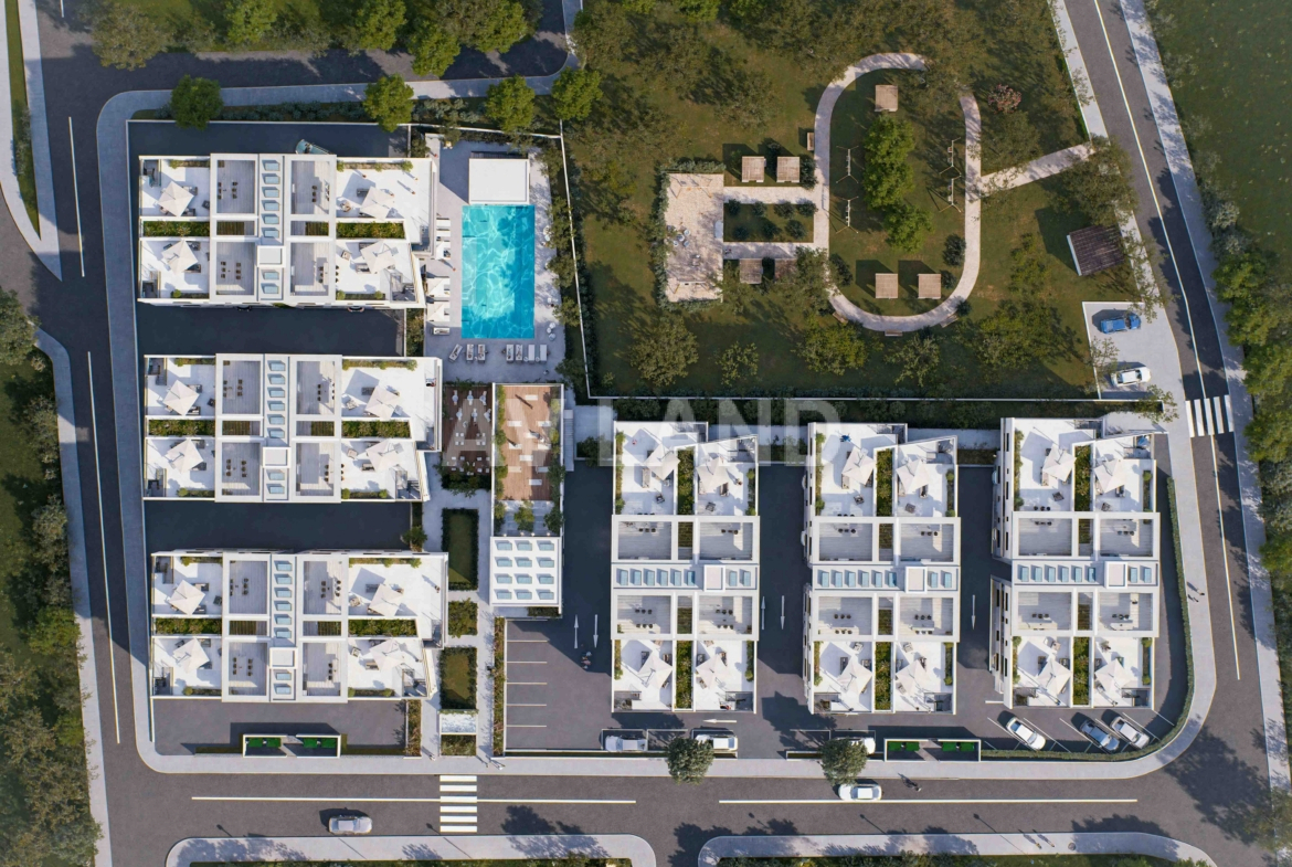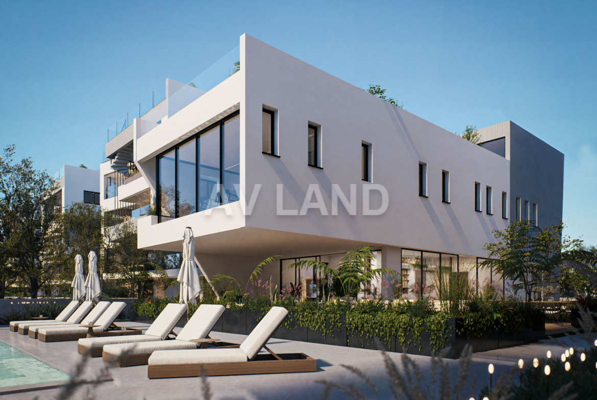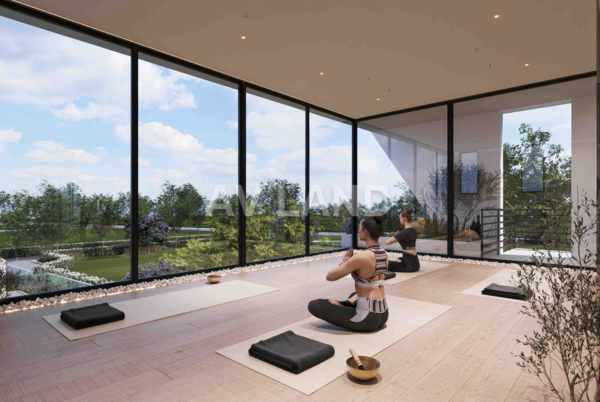 Unwind with premium amenities: a large communal pool, gym, yoga studio, spa, and sauna all part of daily life. Each apartment blends comfort, natural light, smart design, and A+ energy efficiency, ideal for both living and investment. Featuring photovoltaic panels as an option for all apartments. More than 60 photovoltaic panels, placed above the pergolas, offer shade and free energy.