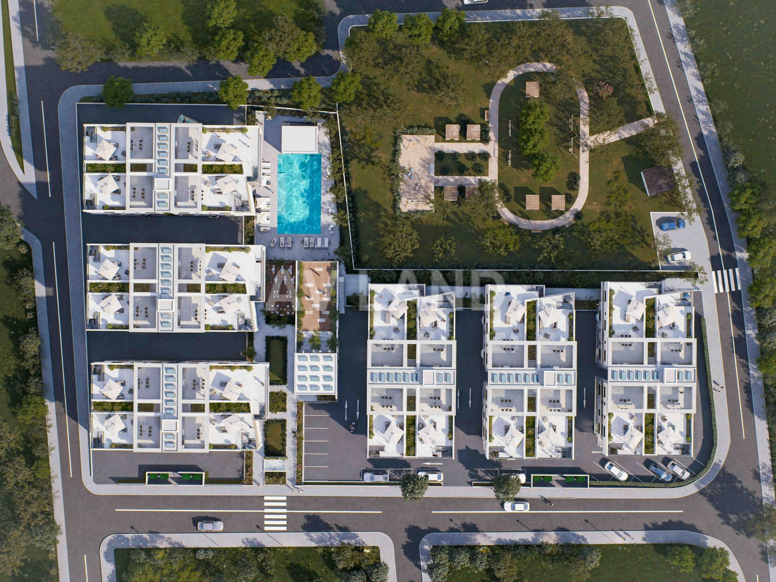 Elegant apartments, just minutes from the beach and the city center. Built around a rejuvenated public park, a rare green space that adds beauty, calm, and community to the daily life. Framed by a lush park and vibrant cafés, this is where comfort and community come together. Comfort, style, and location – all in one.