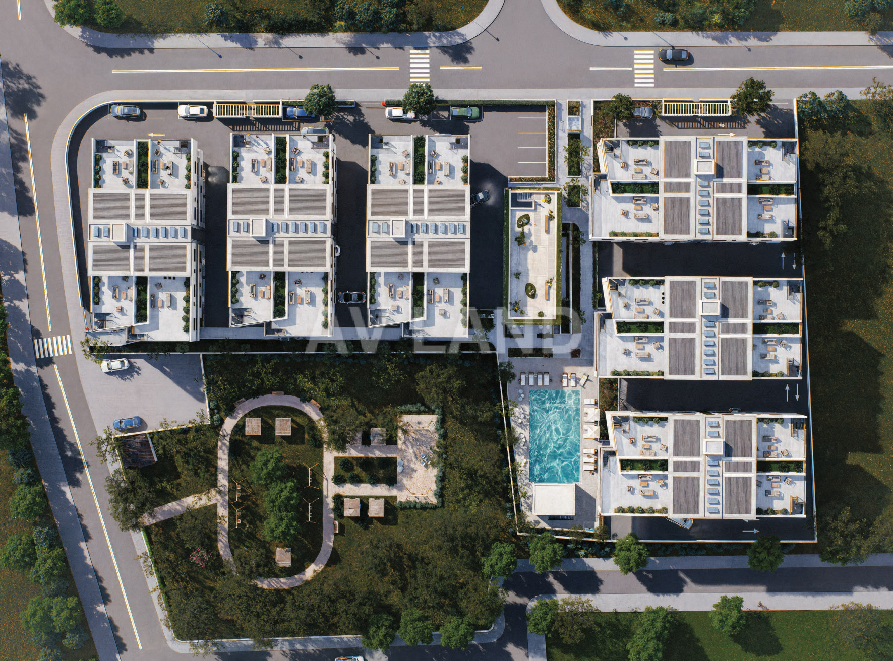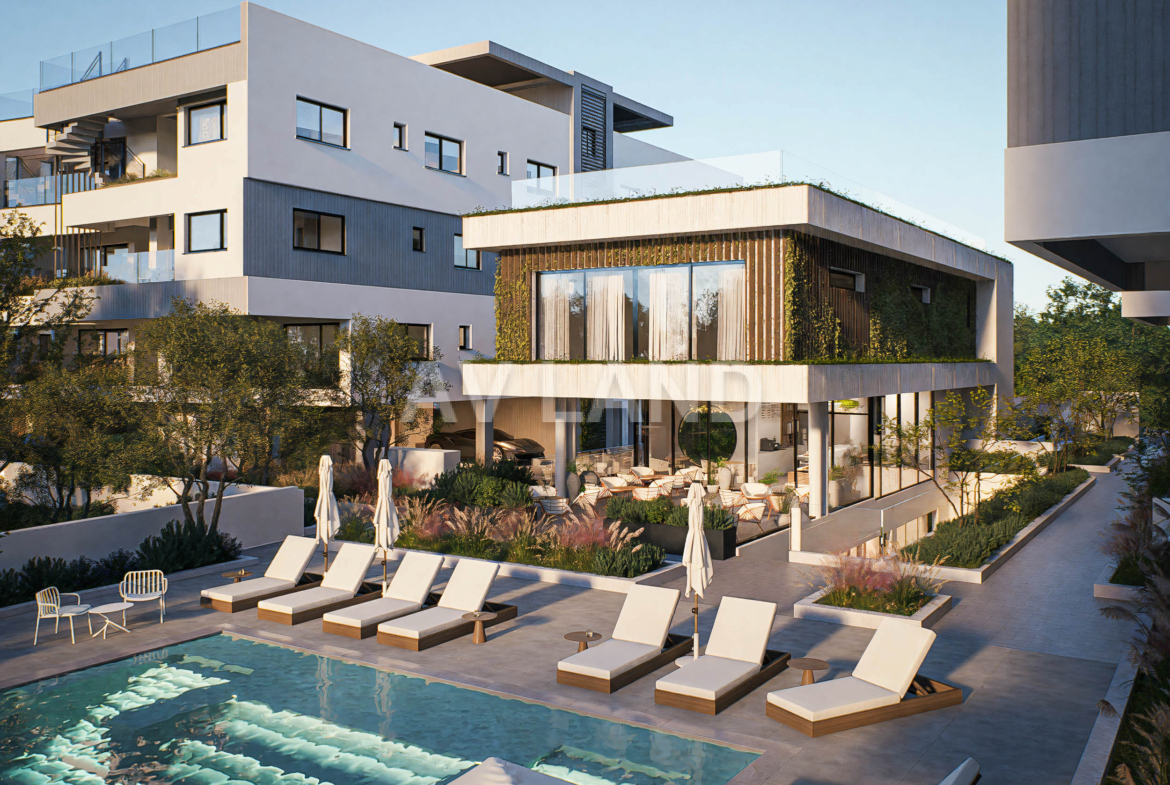 Modern and elegant apartments located just minutes from the beach and Paphos city centre, built around a revitalized public park—a rare green space that brings calm, beauty, and a true sense of community to everyday living. A resort-style residential complex offering studios to 3-bedroom apartments, thoughtfully designed to combine comfort, natural light, energy efficiency, and smart layouts, making them ideal for both permanent living and investment. The development surrounds a lush public park and features a fully equipped clubhouse with premium amenities, creating a relaxed, resort-like lifestyle in the heart of the city. More than 60 photovoltaic panels installed above pergolas providing shade and contribute to free sustainable energy.