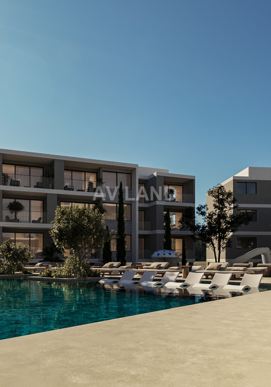 Every detail is designed to enrich well-being in a curated environment that inspires movement, mindfulness, and social connection. 10 architecturally striking residential buildings with 200 elegantly designed apartments, expansive landscaped gardens, designed as serene urban sanctuaries and a seamless living experience, capturing the essence of Mediterranean elegance. Step into a world of curated leisure, wellness, and community with a state-of-the-art fitness pavilion and outdoor fitness area, an exclusive wellness spa, sauna, and jacuzzi, dedicated indoor and outdoor yoga spaces, and expansive resort-style pools and dedicated children’s pools. For social and recreation: a sophisticated signature restaurant and café, a boutique market and kiosk for daily essentials, a professional-grade padel court, vibrant indoor/outdoor kids’ clubs and play areas, lounge spaces and a curated events program fostering a vibrant community and a grand, hotel-inspired lobby—a statement of sophistication.