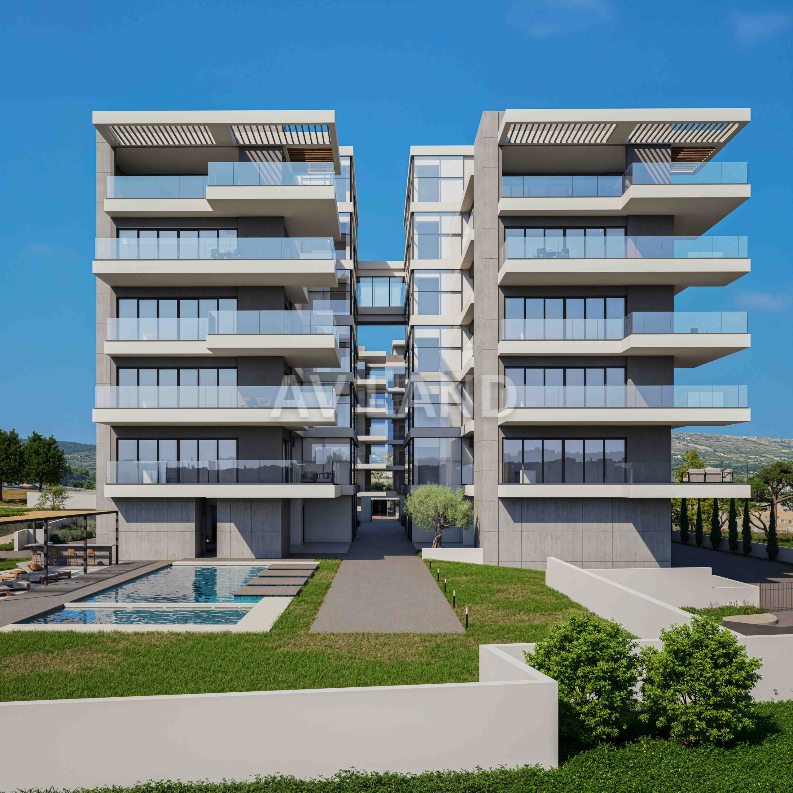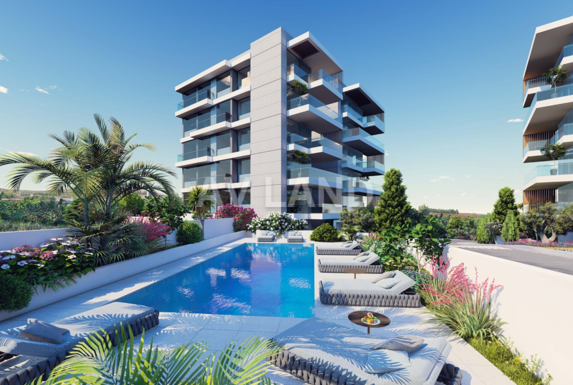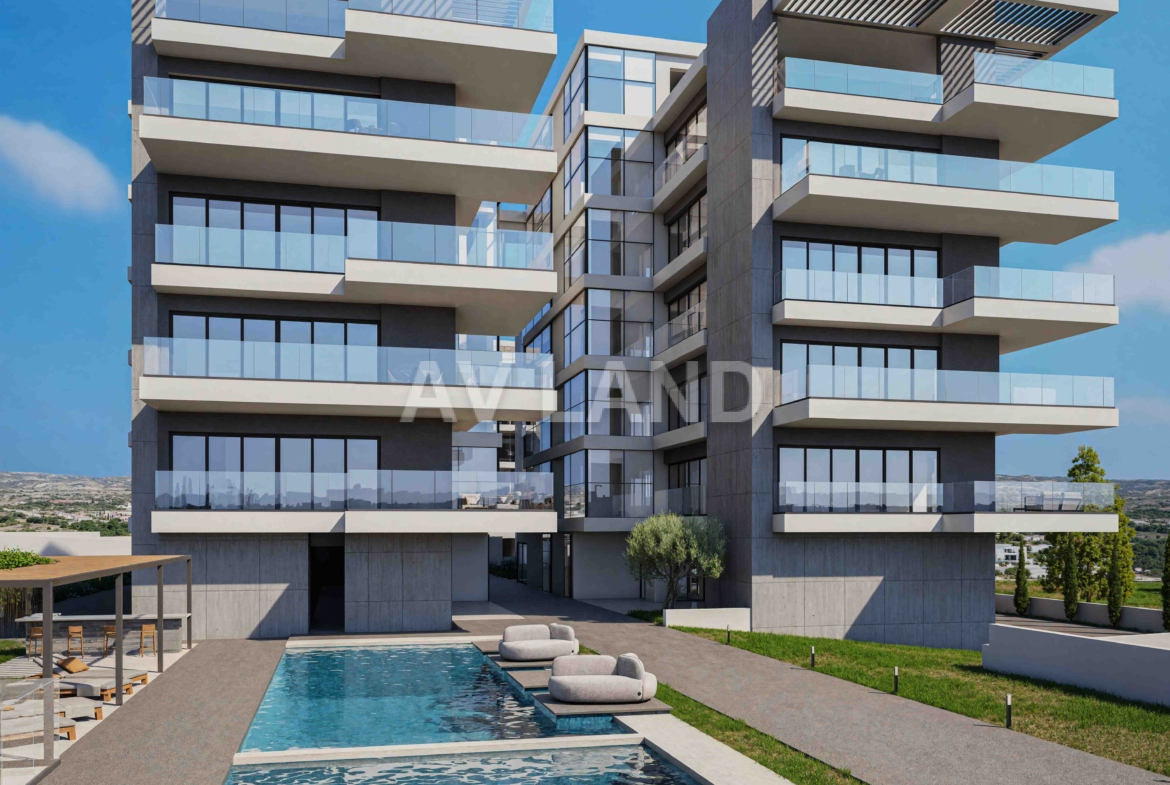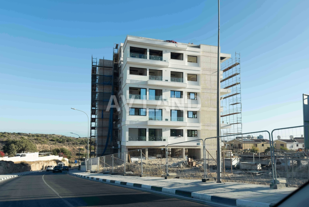 A stunning development with two 5-storey blocks of apartments in Paphos, with the majority of which will have excellent sea views. A number of features can be found in the development, such as a communal swimming pool for each block, solar panels which will improve the energy efficiency of the building, and of course the beautiful modern design of the building that comes with sleek lines, large window openings and concrete finishing.