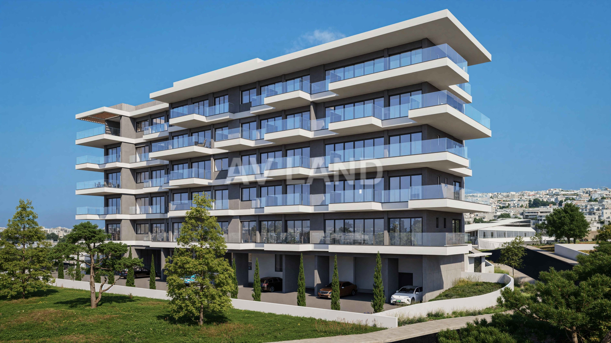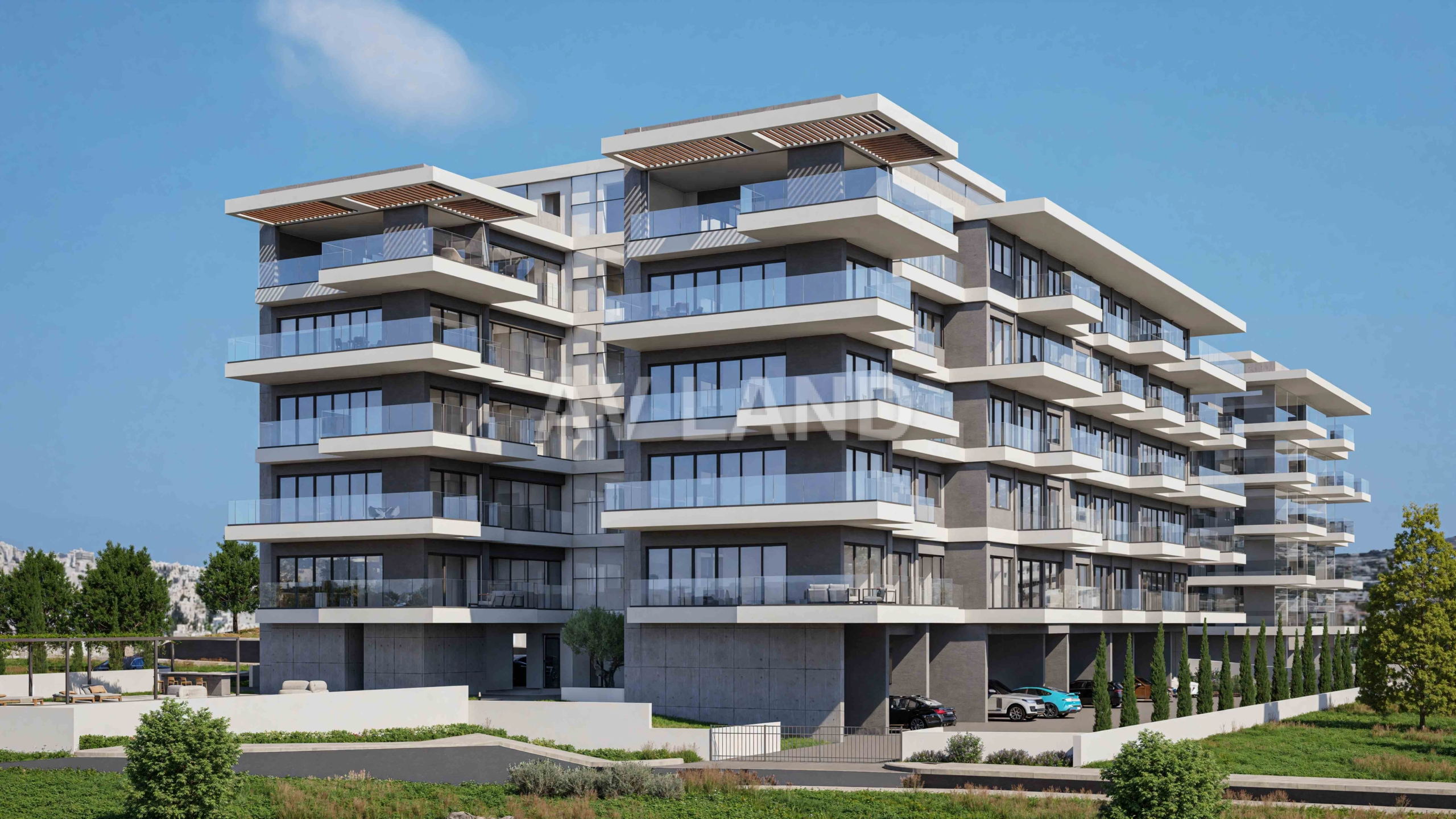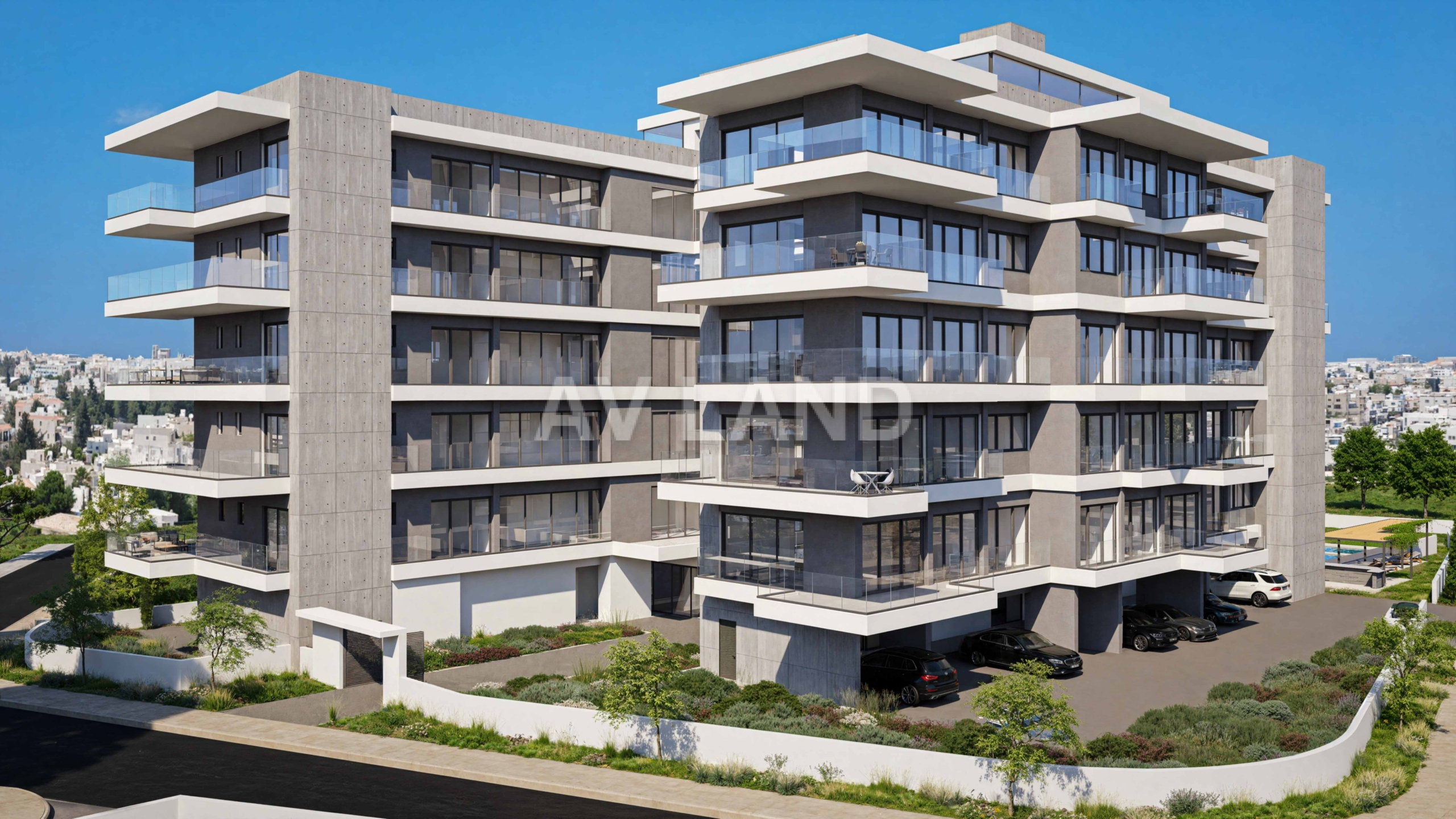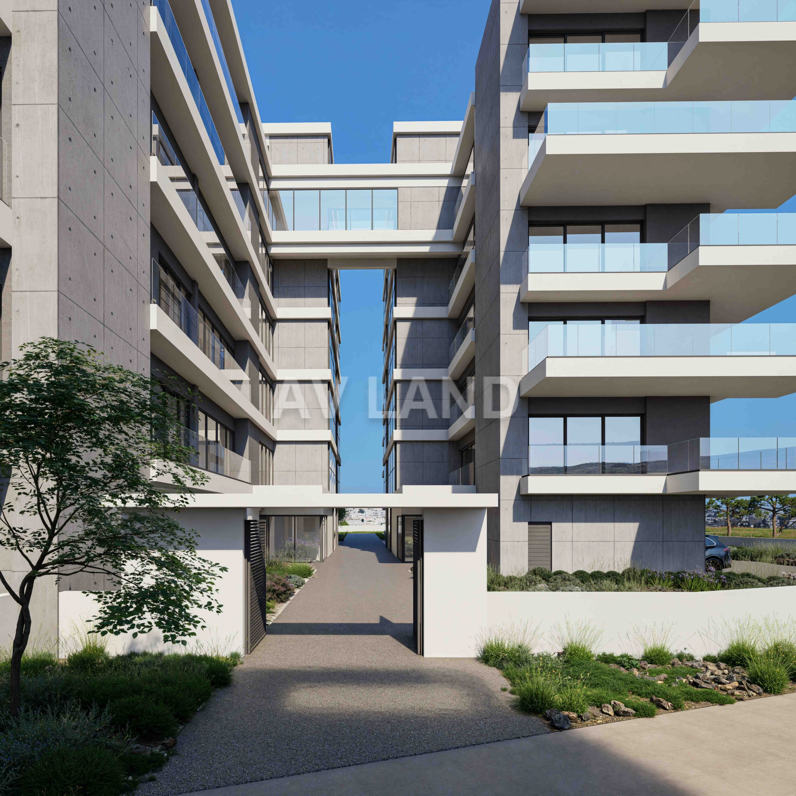 A stunning development with two 5-storey blocks of apartments in Paphos, with the majority of which will have excellent sea views. A number of features can be found in the development, such as a communal swimming pool for each block, solar panels which will improve the energy efficiency of the building, and of course the beautiful modern design of the building that comes with sleek lines, large window openings and concrete finishing.