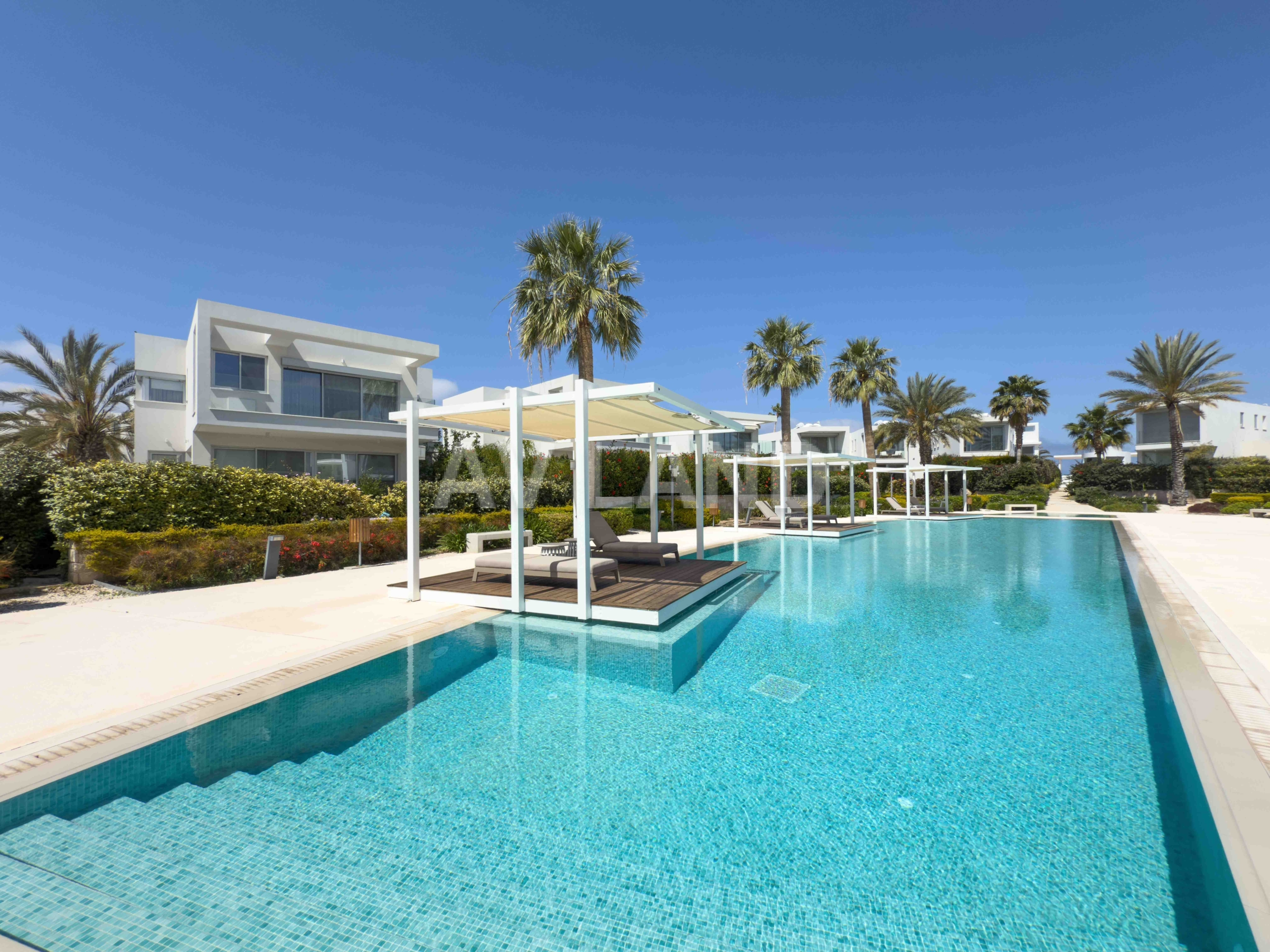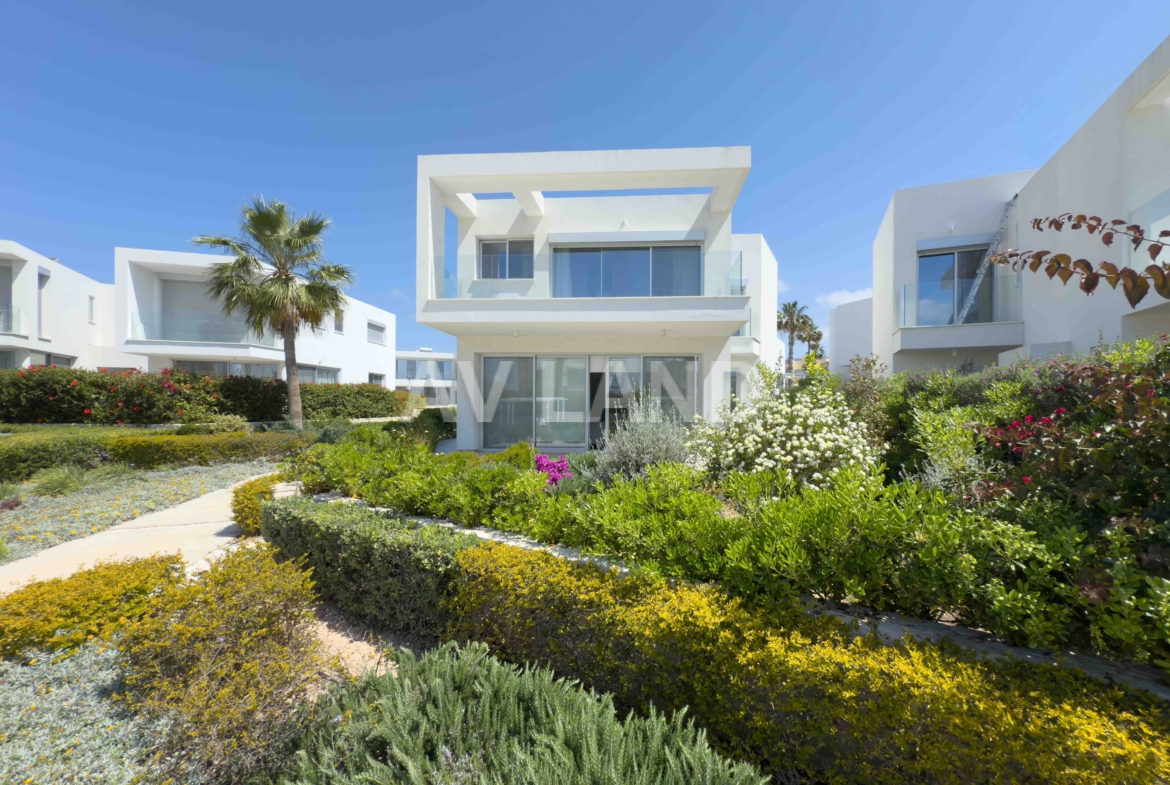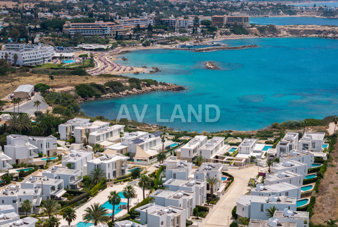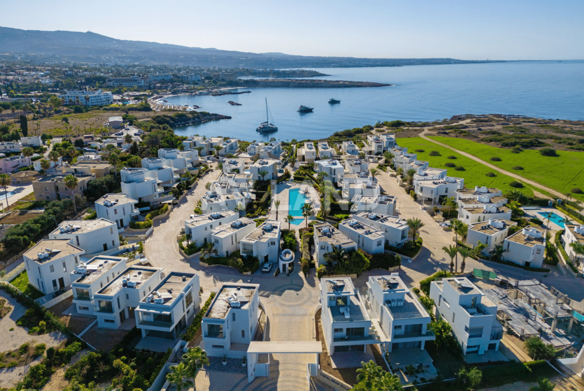 Situated on the coastline of picturesque Coral Bay, a prestigious gated community of 63 high-end residences, all within walking distance to the Mediterranean Sea and close proximity to restaurants, shops, and amenities. This 4-bedroom, 4-bathroom detached villa, built in 2020, offers 216 m² of beautifully finished internal living space on a 334 m² private plot, within one of the most sought-after gated beachfront communities in Cyprus. Clean contemporary lines, a rich materials palette, fluid transitions between indoor and outdoor living, and large openings that draw in the Mediterranean light and air.