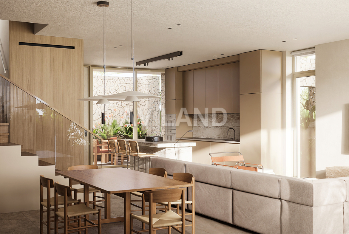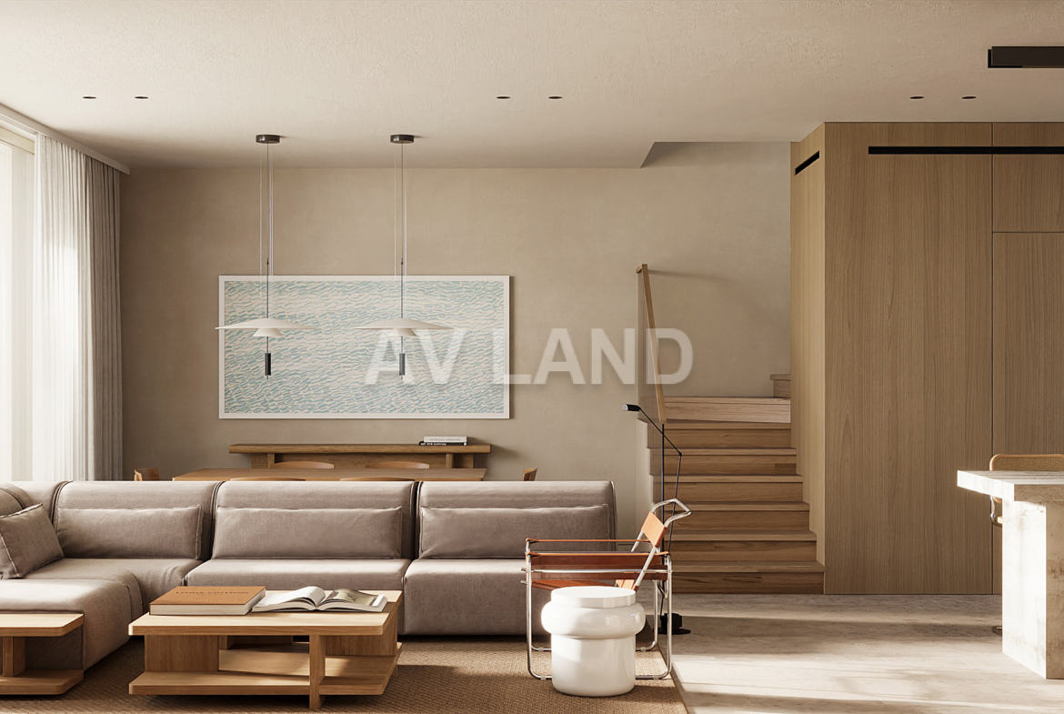 Each villa is crafted with natural stone facades, wooden detailing, and clean architectural lines, reflecting both the beauty of the landscape and the rich heritage of the area. Interiors feature oak parquet flooring, soft pastel tones, and warm wooden finishes, creating a tranquil and inviting atmosphere. On-site amenities include: a 40-meter river-style swimming pool, children’s pool and playground, Clubhouse and reception area, shaded lounge areas and landscaped lawns, sauna and outdoor fitness equipment, yoga and sports area with sea views, and table tennis zone for casual recreation.