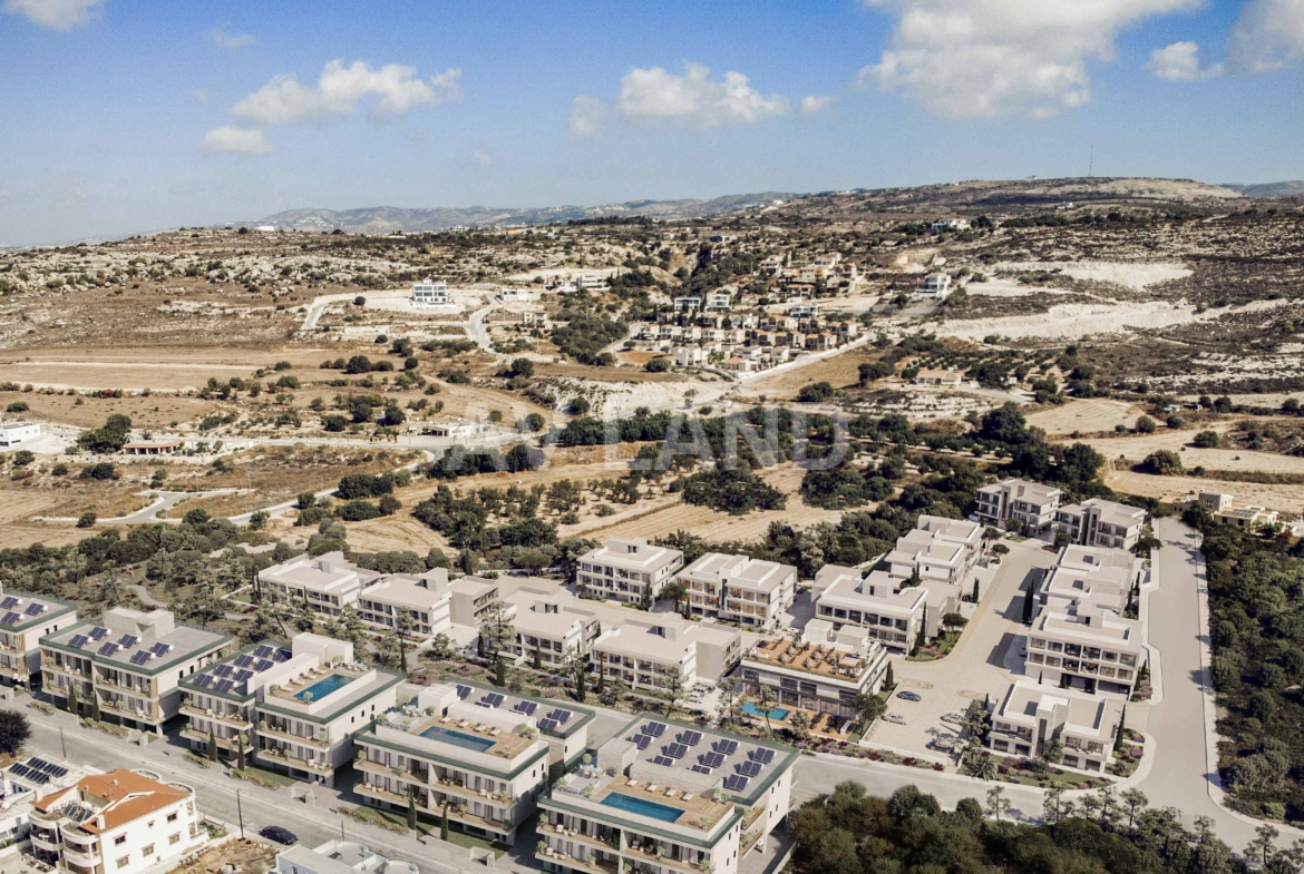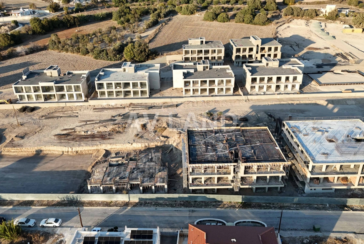 A luxurious yet affordable apartment complex located in the charming town of Geroskipou, Paphos. Conveniently located near the main road and the Elea Golf Resort, this sleek and modern complex features five exclusive blocks surrounded by beautifully landscaped gardens. With studio, 1-bedroom, and 2-bedroom units, it’s the ideal choice for young couples and individuals seeking affordable luxury. Offering spacious living areas, elegant bedrooms, and high-end fixtures. Enjoy upgraded thermal aluminum windows, VRV technology cooling, laminate flooring, wall-mounted toilets, and luxurious walk-in showers. The kitchens feature top-quality counters and finishes, creating a modern and inviting space. The complex offers a secure and safe residence with ample parking space and an integrated alarm system for added convenience and peace of mind. A wide selection of restaurants, supermarkets, banks, and stores are conveniently available in the picturesque town that is tranquil and welcoming. The town also boasts its very own Blue Flag beach that boosts its area appeal as a top investment opportunity in Cyprus.
